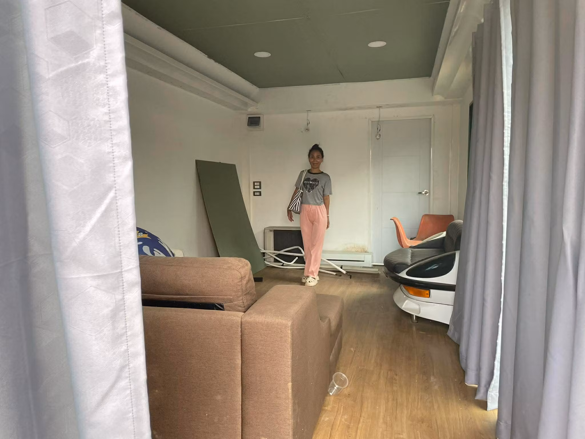 Parkettgolv, Futuristisk design. Ljus öppen planlösning. Flyttbar. Kan även monteras på lastbilschassie